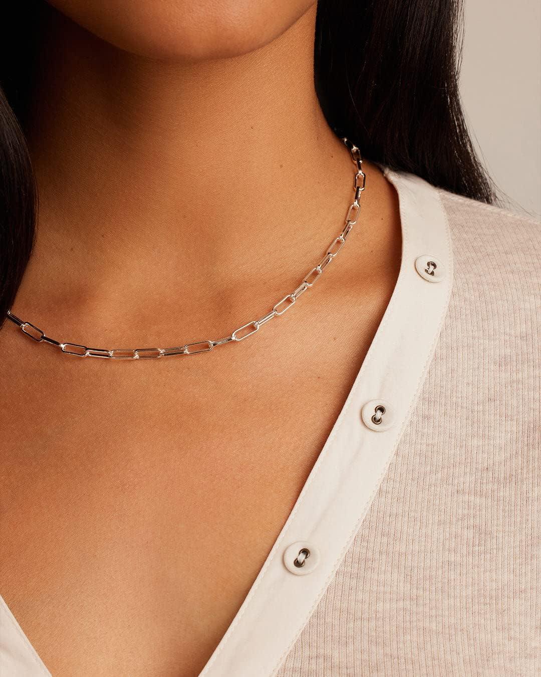 gorjana – Parker Necklace 18″ – 18k Silver or Gold Plated – Adjustable Paperclip Link Chain – Chunky Clasp – Ideal Gift Packaging(Silver Plated)